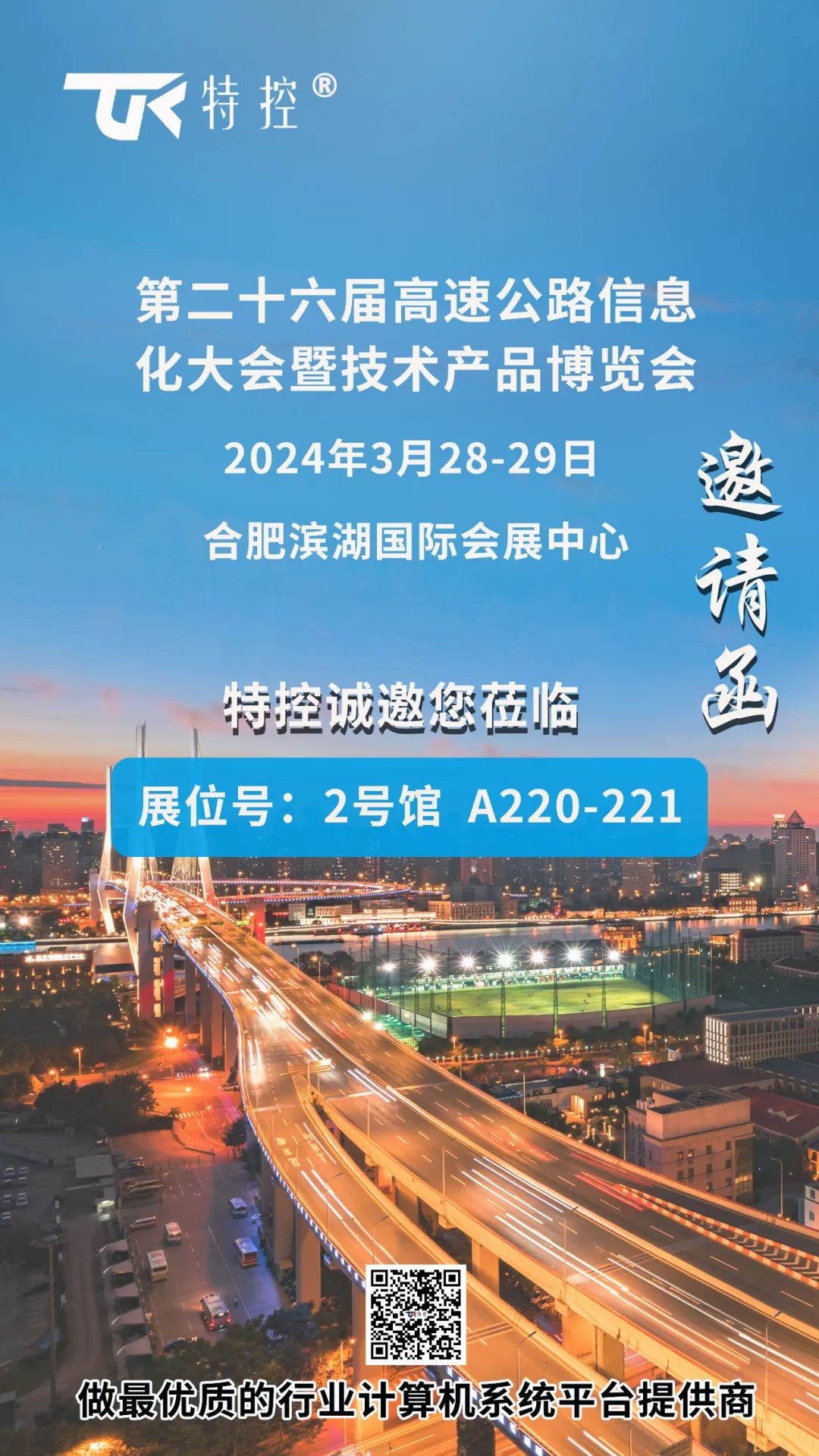 在本屆博覽會上,特控將攜國產龍芯/兆芯/飛騰/海光平臺行業計算機等多款產品,以及高速公路ETC收費系統、高速公路ETC自由流系統、高速動態稱重治超系統、智慧高速服務區充電樁等解決方案在展位2號館A220-221亮相,期待您的到來!