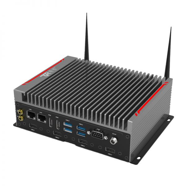 外觀時尚 : 鋁合金一體成型,結構緊湊小巧,工藝精細,科技時尚高性能 : 支持12代LGA1700英特爾® 酷睿 I5-12400,TDP 65W穩定可靠 : 純工業設計,機箱散熱風扇,優良的散熱結構,全密封鋁合金箱體,大面積鋁鰭散熱;機箱可抗接觸式6KV強電磁干擾,標配DC24V輸入,可選DC12V-28V寬壓輸入接口豐富 :1*HDMI,2*DP,2*LAN(Intel),4*COM,4*USB3.2,2*USB2.0,1*遠程開關,6*GPIO(自定義),1*2.5寸硬盤位,1*M.2 (Key M, 2242,支持SATA),擴展插槽1* M.2 (Key M, 2242/2260/2280 PCIe x4 ),1*M.2 (Key E, 2230 支持WiFi),1* M.2 (Key B, 3042/3052支持4G/5G) ,1*Line-Out,1*MIC-in