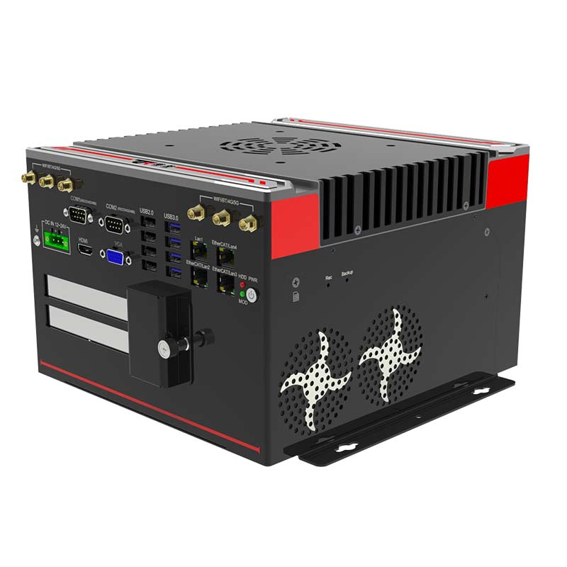 外觀設計 :鋁合金一體成型,結構緊湊,MiNi小巧,工藝精細,科技時尚穩定可靠 : 純工業設計,強勁解熱熱管與純銅一體化的優良散熱結構,全密封鋁合金箱體,大面積鋁鰭散熱,可實現橫向與豎向等多種放置的自然對流散熱,機箱可抗接觸式6KV強電磁干擾,DC12V-24V寬壓輸入高性能 : 支持65W及以下12/13/14 代1700 Intel Core i7/i5/i3 系列處理器接口豐富 : 4*LAN(Intel),6*COM,支持T-MOD模塊擴展,8*GPIO(4*USB2.0/2*RJ45/2*CAN/12DI+12DO三選一擴展),4*USB3.0+4*USB2.0,1*VGA,1*HDMI,1*DP、1*遠程開關,1*一鍵還原,1*一鍵備份,1*SIM槽,1*LINE IN,1*LINE OUT,1*MIC,1*2.5寸硬盤位,1*M.2(KEY-M,2280,PCIEx4 支持SATA) , 1*M.2( KEY-B,3042/3052, PCIE+USB3.0支 持 4G/5G) , 1*MINI PCIE( 全 高 ,PCIE+USB2.0信號),1*PCIEx16,1*PCIEx4,6*天線孔